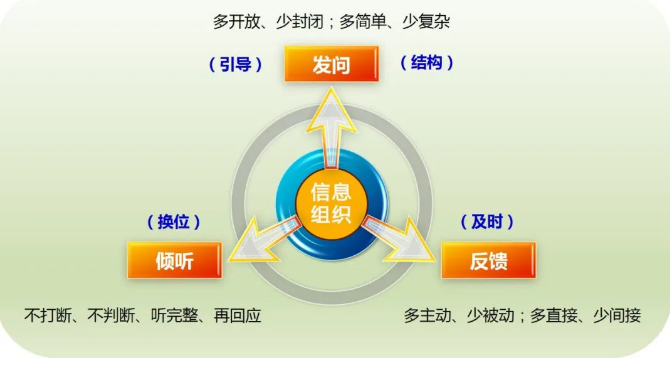 一次有效的溝通,通常需要四種技巧來保障:信息組織、發問、傾聽、反饋。其中,信息組織是基礎,也是有效溝通的前提。為簡化問題,本文只針對一對一的溝通情境。