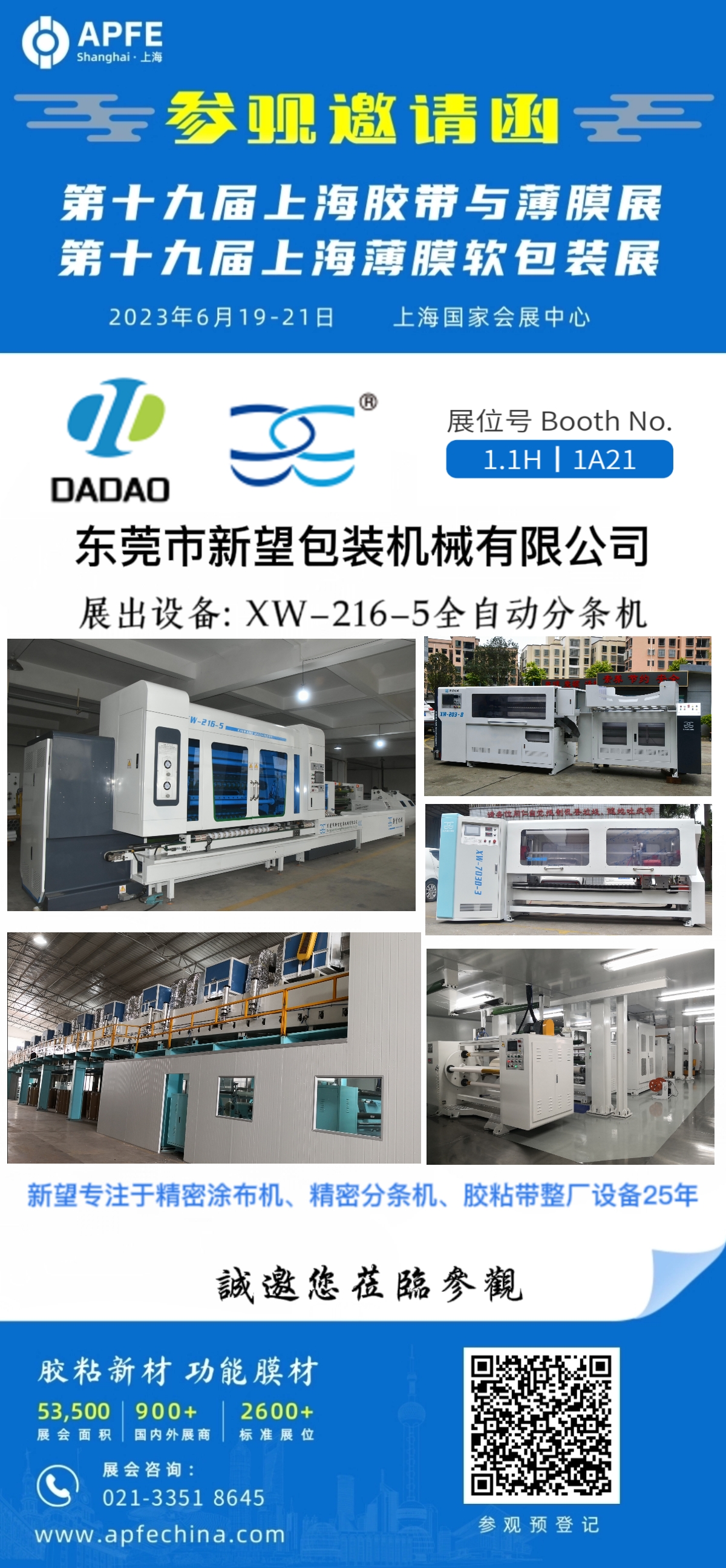 #第十九屆上海國際膠帶與薄膜展覽會#第十九屆上海國際薄膜軟包裝展覽會 2023年6月19日至21日 上海國家會展中心1.1H館 展位號1A21,期待您的蒞臨指導,與您不見不散