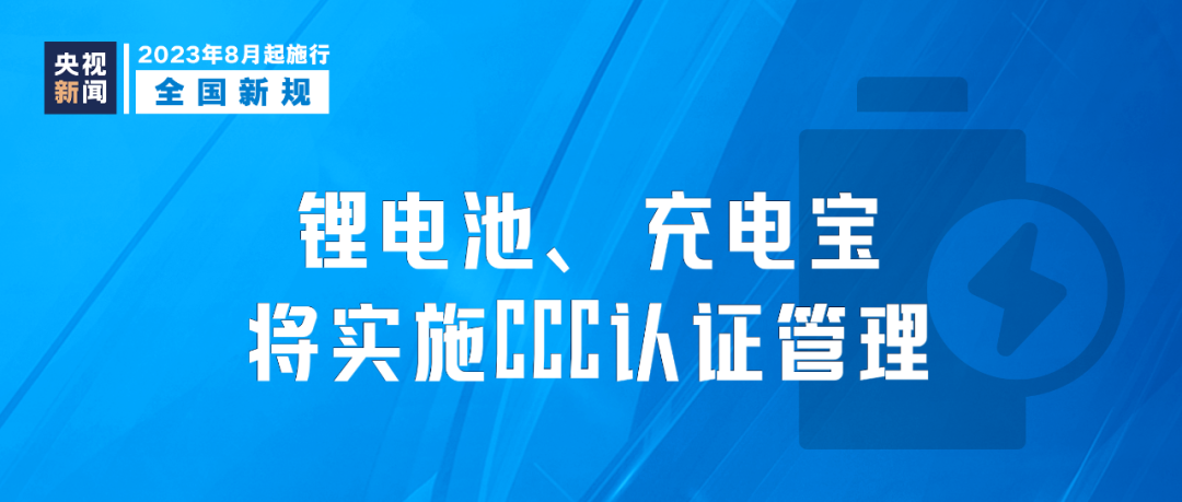 市場監管總局發布公告,自2023年8月1日起,對鋰離子電池和電池組、移動電源實施CCC認證管理;自2024年8月1日起,未獲得CCC認證證書和標注認證標志的,不得出廠、銷售、進口或者在其他經營活動中使用。